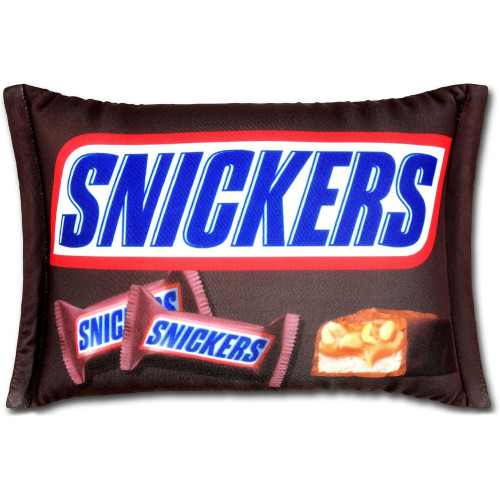 - This full-color, double sided, officially licensed print pillow looks like a package of your favorite Snickers chocolate bar and is ready to liven up any space